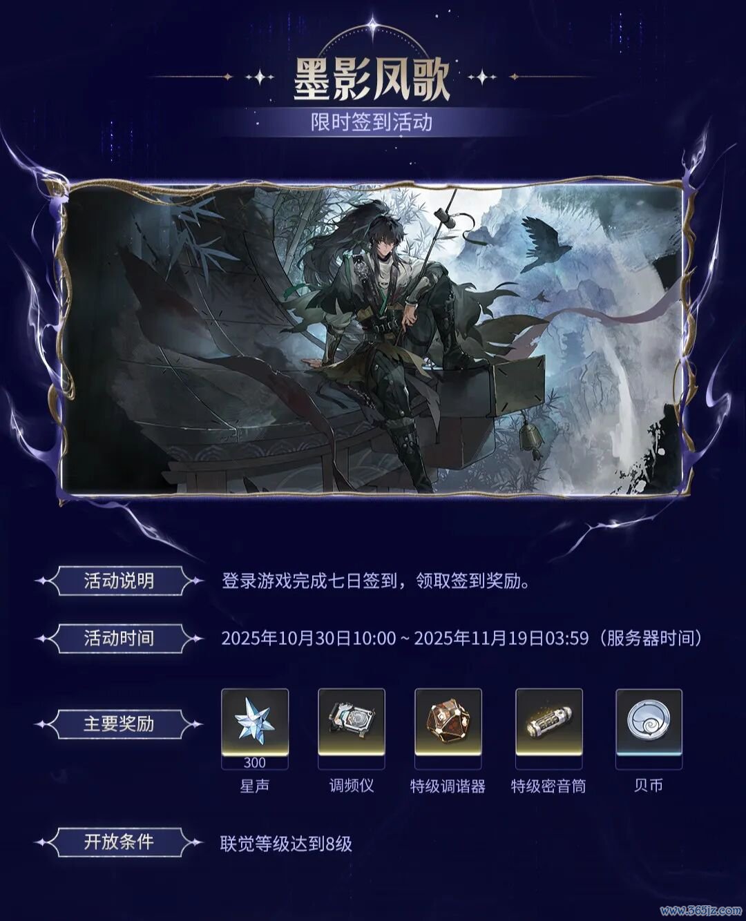 跟着2.7下半版块开启,除了五星脚色仇远、赞妮的up外,签到新行径【墨影凤歌】也会同步开启,不时七天签到,便可获取300星声等奖励,还是曲常可以的。