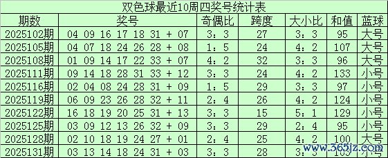 奇偶走势分析:上期开特地偶比为4:2,上周四红球奇偶比3:3,最近十周四偶数红球略占上风,本期瞻望偶数红球再次走热,参考奇偶比2:4。